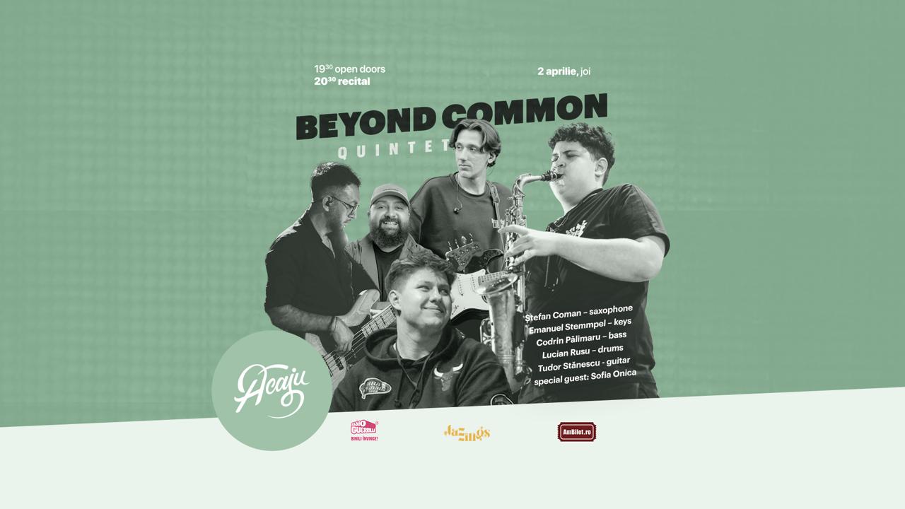 Seria #Jazzings continuă la Acaju Iași cu Beyond Common Quintet, un concert de jazz care promite o seară memorabilă pentru iubitorii genului.